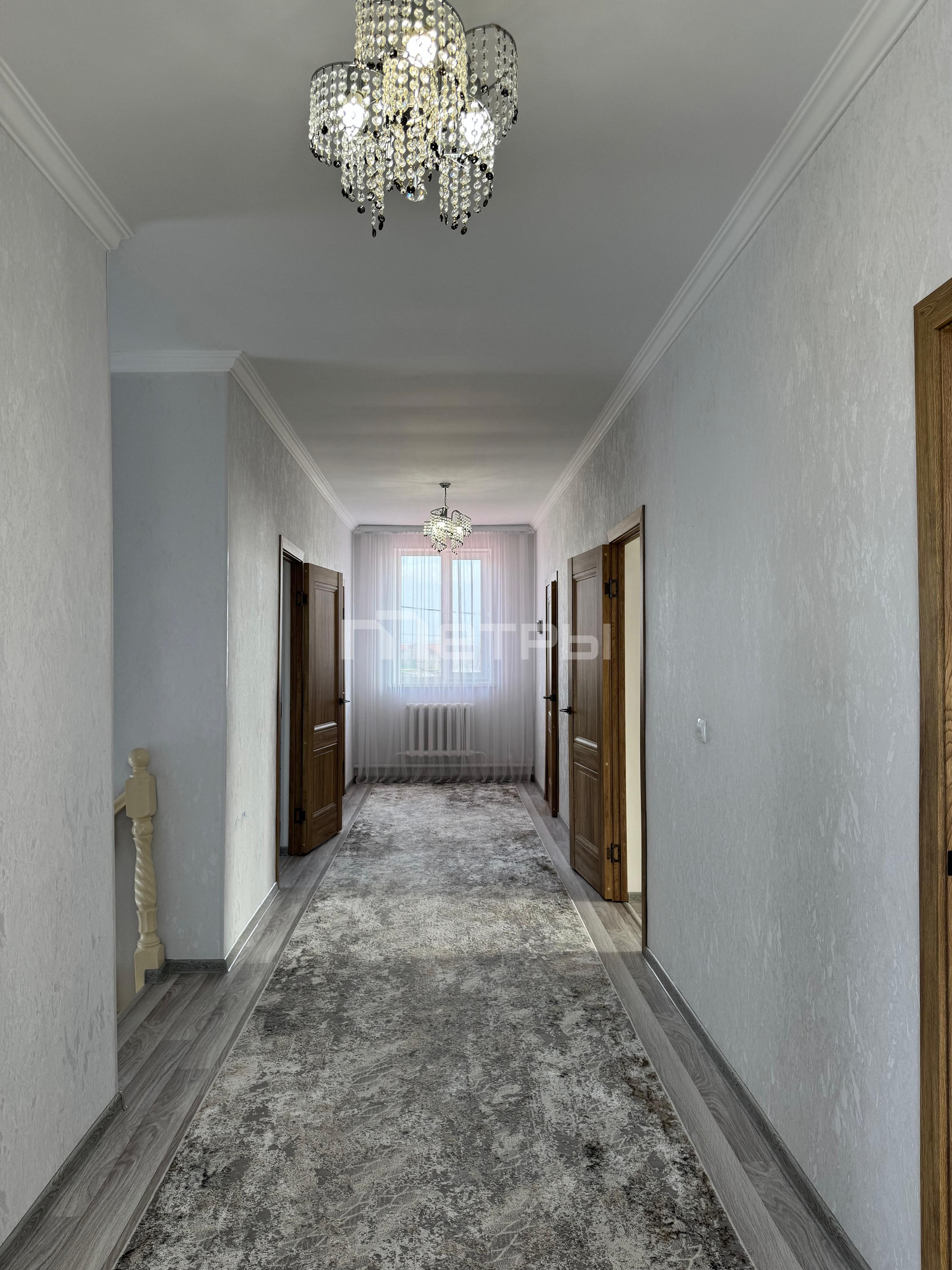 Продаётся Двухэтажный Коттедж. В с. Талапкер 4 км от Астаны. Участок 10 соток, 240 кв. м. Евро ремонт, 8 комнат. На 2-ом этаже 5 действующих спален, санузел ванная. На 1-ом этаже большой зал, холл, кухня, 1 спальня, санузел душевая, под лестницей подсобное помещение с полками, холодная веранда. Топка с отдельным входом с улицы и из дома стоит газовая действующая печь отопления, природный газ так же проведён к плите. Трубы центрального водоснабжения проведены в дом. Асфальт к дому, по всей улице фонари освещения. Коттедж построен из добротных материалов: фундамент 80 см. Плиты перекрытия, Армопояс, стены Газоблок Экотон. Во дворе брусчатка, высокий забор 2 м. Рваный камень. Яблони, вишни, малина, клубника всё плодоносящие. Документы в порядке. Не в залоге. Цена 80 000 000 тенге. Торг Мебель вся остаётся, практически новая.