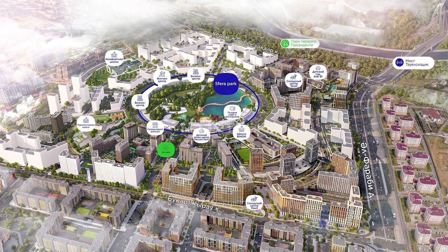 Жилой комплекс расположен в районе пересечения проспекта Аль-Фараби и улицы Керей-Жанибек хандар. Это активно развивающаяся часть Астаны с высоким потенциалом роста стоимости недвижимости.