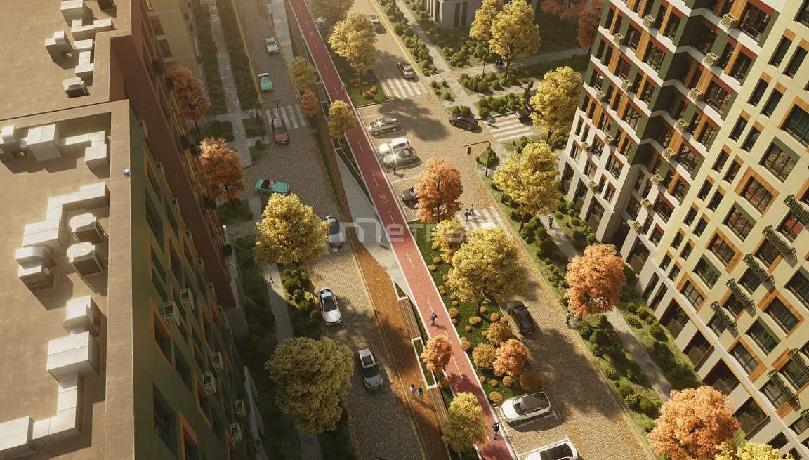 Центральный сквер жк выделяется на фоне городской застройки стильным и ярким дизайном: